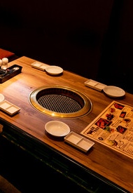 「炭焼喰人」の店内は、温かみのある照明とシックなモダンインテリアが調和した、落ち着きある大人の社交場。当店では、厳選された肉を最高の状態で味わっていただくために、語らいを愉しむ「カウンター・テーブル席」や開放感とプライベート感を両立した「掘りごたつ席」など、趣の異なる多彩なお席をご用意しております。